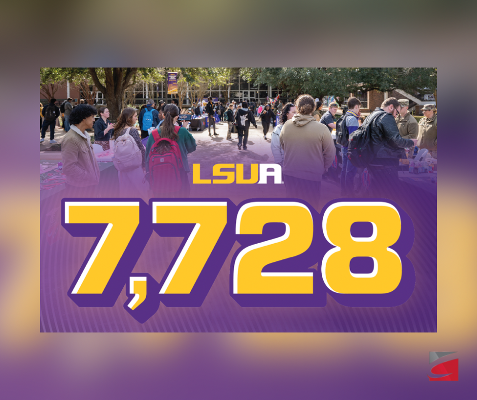 ALEXANDRIA, La. (2/5/2026) – LSUA enrollment record Spring 2026 was set as Louisiana State University of Alexandria welcomed 7,728 students. The figure represents an 11.9% increase over Spring 2025 and the highest official enrollment in the university’s history.
