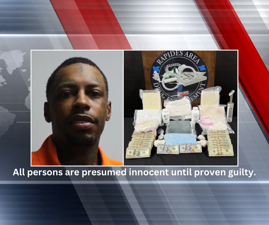 Jones was booked into the Rapides Parish Detention Center on several distribution charges. He faces counts for fentanyl, methamphetamine, and two counts for Schedule IV substances. At this time, Jones remains in custody on a $1,000,000 bond.